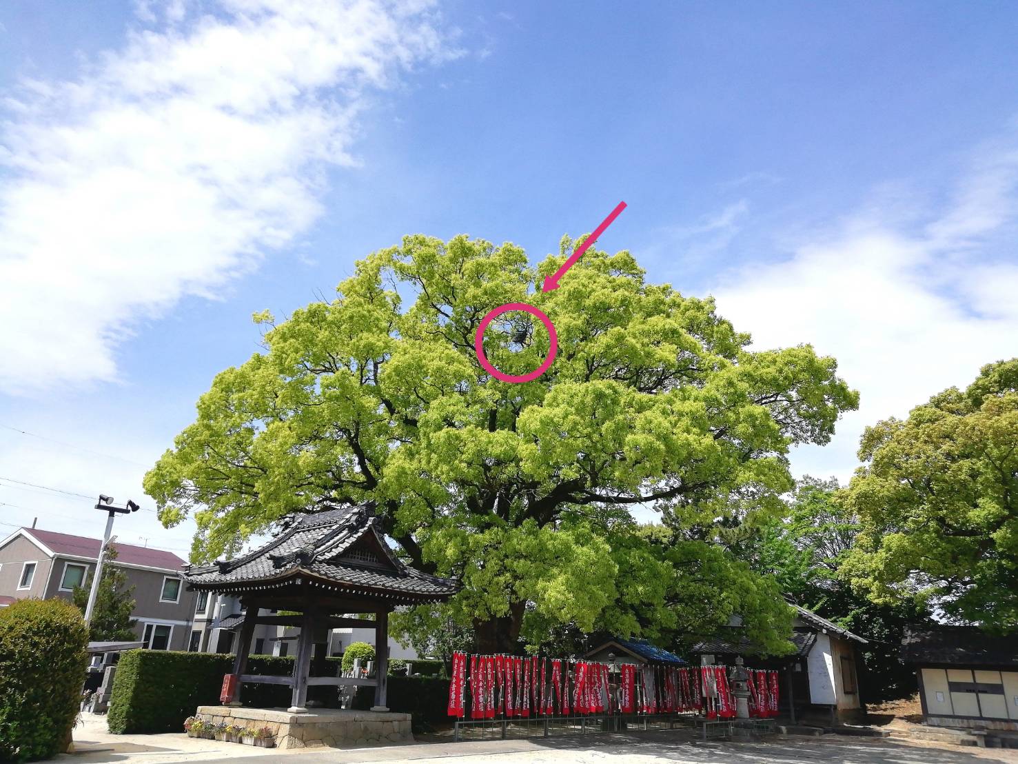 ご神木のクスノキは目に鮮やかな若葉に衣替えしました。